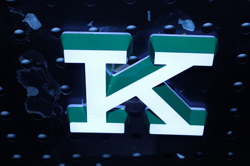将水晶亚克力板用雕刻机雕刻成型,然后粘贴打磨,在排上LED光源,然后在字的边上做油漆处理即可。