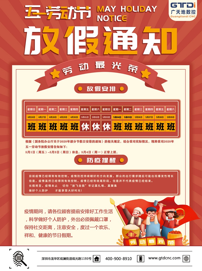 2020年DB电竞(DBGame)数控公司五一劳动节放假时间安排